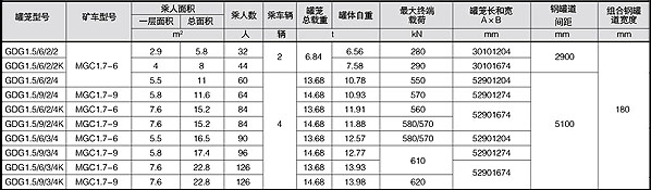 ***大載荷(t) | 罐籠質(zhì)量(t) | 鋼繩終端質(zhì)量(t) | 首繩 直徑(mm) | 尾繩 尺寸(mm) | 罐籠 總高(mm) | 鋼性罐道外形尺寸(mm) | 鋼繩罐道(mm) | 乘人數(shù) | ||||||