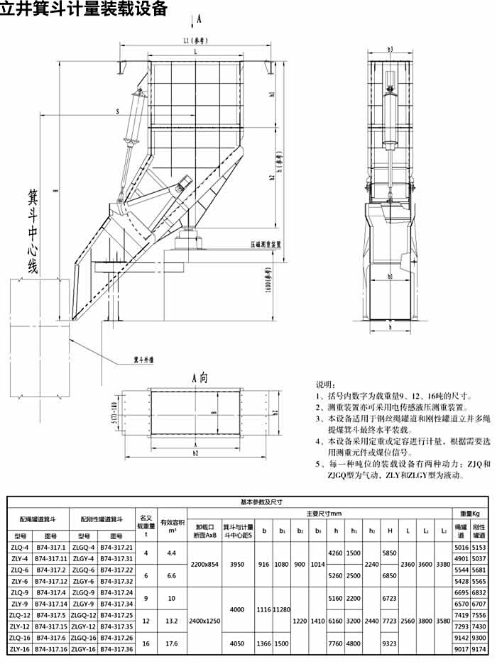 1、本設備適用于鋼絲繩罐道和剛性罐道立井多繩煤箕斗***終水平裝載。
